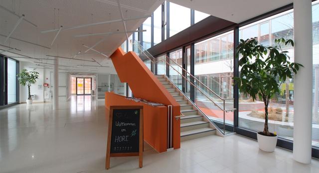 Unser Kinderhaus ist ein zweistöckiges, modernes Gebäude mit einem großzügigen Außengelände. Jedes Stockwerk bietet Raum für vier Gruppen mit jeweils maximal 25 Kindern. Alle Gruppen verfügen über geräumige und kindgerecht ausgestattete Gruppenräume, an die sich jeweils ein Nebenraum anschließt, der zum Lesen, Ausruhen, für Spiele in Kleingruppen, das Mittagessen und die Hausaufgabenbetreuung genutzt wird. Darüber hinaus verfügen wir über zahlreiche Funktionsräume (Atelier, Traumraum, Therapieraum, Werkraum, Medienraum), eine Turnhalle, großzügige Wartezonen, sanitäre Anlagen sowie Büro und Wirtschaftsräume.